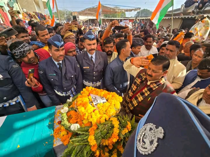 ग़ाज़ीपुर : ग़ाज़ीपुर जिले के गांव अंधऊ में वायु सेना के जवान आत्मा सिंह की अंतिम यात्रा में भारी शोक की लहर दौड़ गई। 21 जनवरी को तमिलनाडु के सुलूर स्थित वायु सेना बेस पर हार्ट अटैक के कारण आत्मा सिंह का निधन हो गया था। उनके निधन के बाद उनका शव उनके गांव अंधऊ लाया गया, जहां ग्रामवासियों, राजनीतिक दलों के नेताओं और समाजसेवियों ने उन्हें भावभीनी श्रद्धांजलि दी।